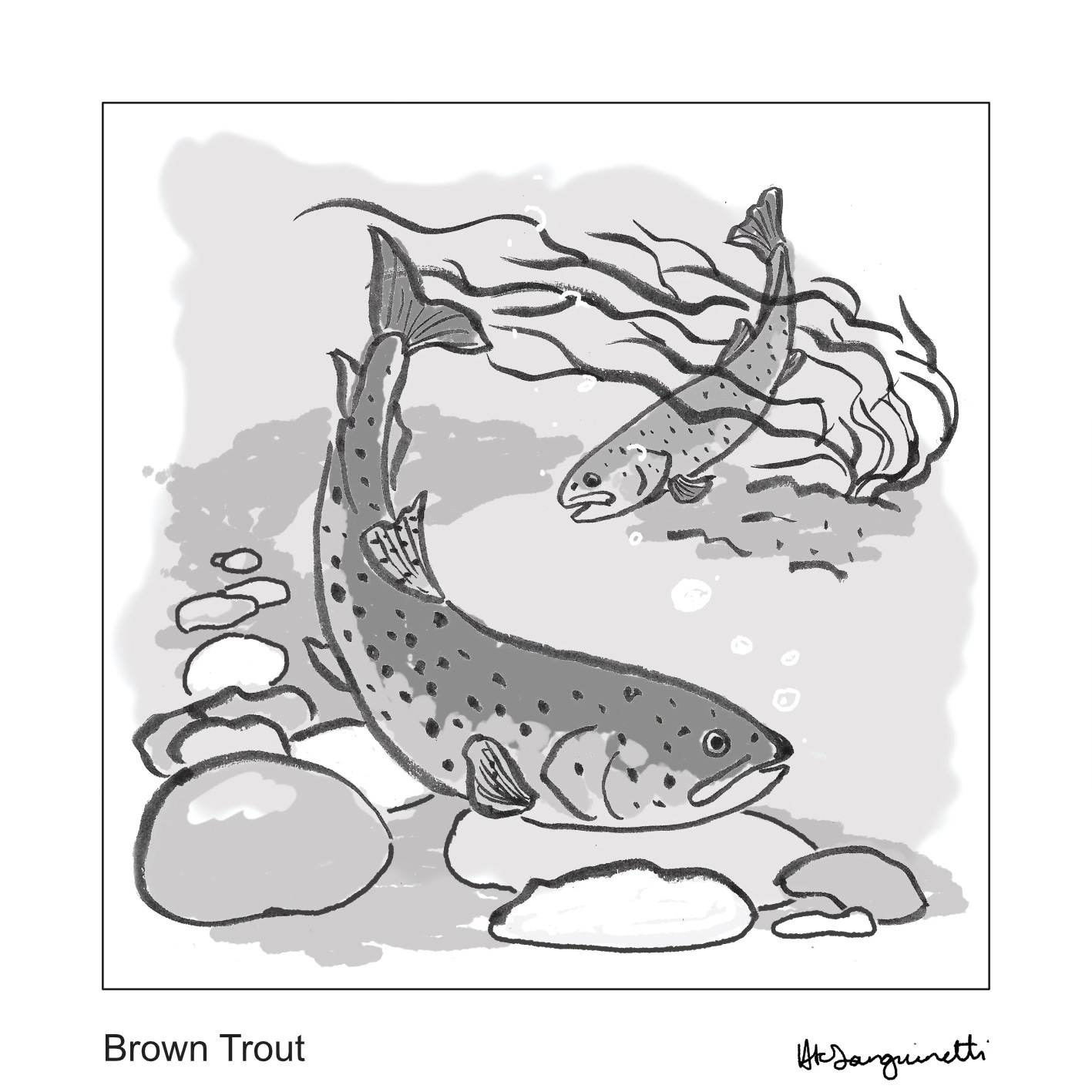 Lastly, here’s another rough sketch I made of some Brown Trout; a brief for a third Handmade Illustration workshop I’ll attend with the AOI. This one will be about the gorgeous paper collage work by nature illustrator Kate Slater and I’m really looking forward to it.